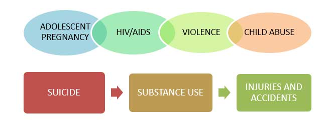DAMAGE DUE TO ADDICTION / వ్యసనం కారణంగా నష్టంIrrespective of drug abused, addiction leads to / మాదక ద్రవ్యాల దుర్వినియోగంతో సంబంధం లేకుండా వ్యసనం ఈ క్రింద చూపబడిన సమస్యలకు దారితీస్తుందిPhysical deterioration / శారీరక క్షీణతPsychiatric problems / మానసిక సమస్యలు Intellectual impairment / మేధోపరమైన బలహీనతPersonality deterioration / వ్యక్తిత్వ క్షీణతIncreases risk of accidents and higher susceptibility to high risk behavior in the form of unprotected sex or use of unsterile needles / ప్రమాదాల ప్రమాదాన్ని పెంచుతుంది, అధిక ప్రమాదకర ప్రవర్తనకు/ అసురక్షిత సెక్స్ మరియు ఒకరు వాడిన సూదులు వాడడం వంటి ప్రవర్తన కలిగి వుంటారు Legal risk / చట్టపరమైన ప్రమాదం
